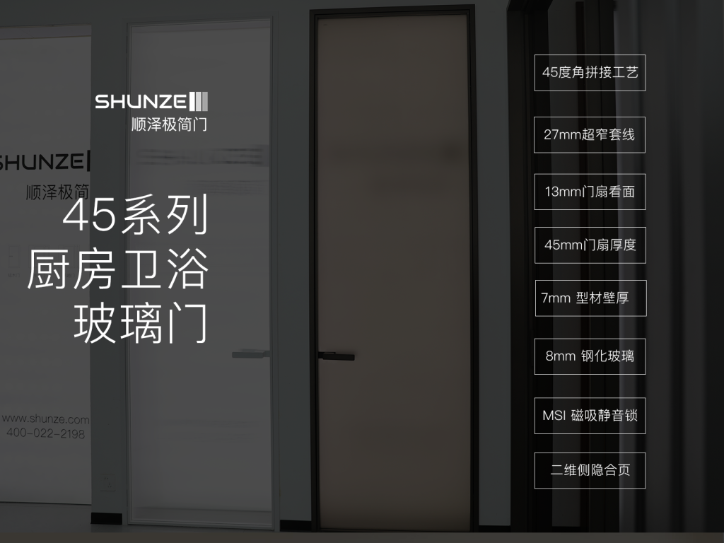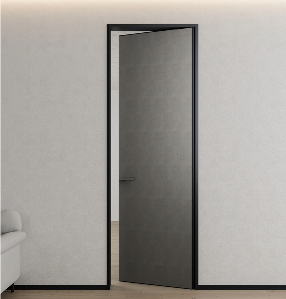 顺泽极简门55系统铝木门可做33mm平框,可做门墙一体隐框门/隐形门;可做批灰款隐框/隐形门。